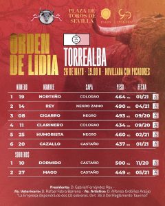 La Real Maestranza de Sevilla acoge esta tarde la tercera novillada de abono. Harán el paseíllo Germán Vidal «El Melli», que se despide de novillero, Aarón Palacio y Manuel Jesús Carrión frente a ejemplares de Torrealba