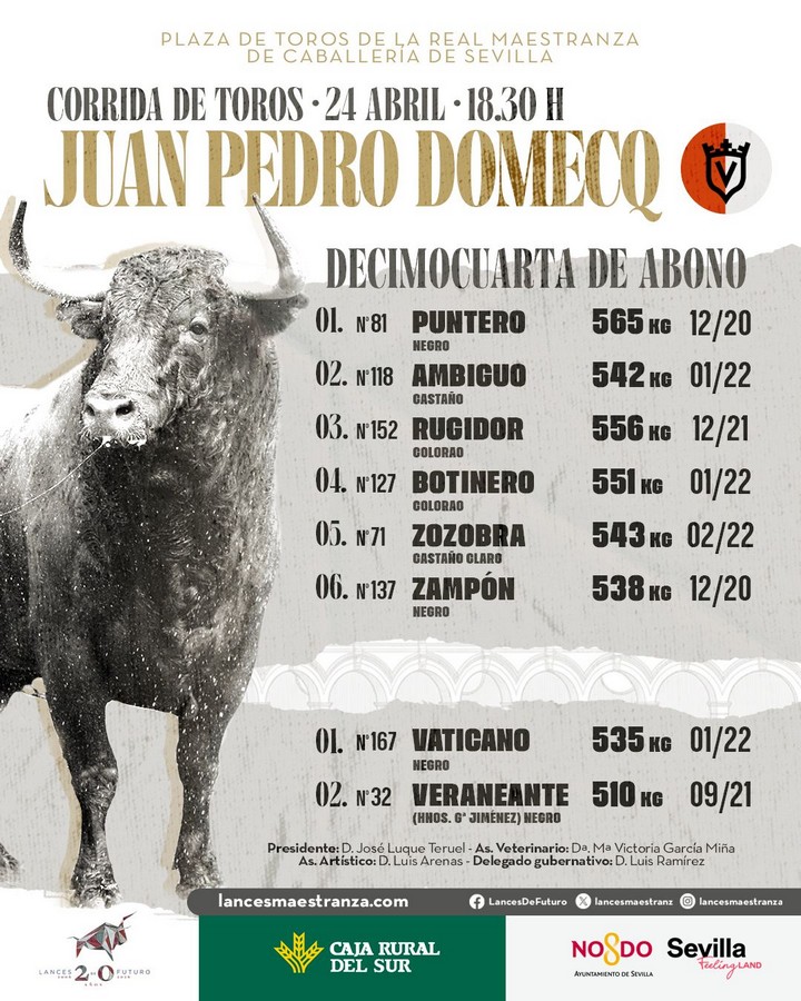 24 Abr ActualidadOrden de lidia de los toros de Juan Pedro Domecq para Sevilla Posted on 24/04/202624/04/2026 by Redacción Orden de lidia de los toros de Juan Pedro Domecq para Sevilla Trenzarán el paseíllo Daniel Luque, Juan Ortega y Pablo Aguado Orden de lidia, cuadrillas y fotos de los toros Orden de lidia de los toros de Juan Pedro Domecq para Sevilla Orden de lidia de los toros de Juan Pedro Domecq para Sevilla Orden de lidia de los toros de Juan Pedro Domecq para Sevilla Orden de lidia de los toros de Juan Pedro Domecq para Sevilla Orden de lidia de los toros de Juan Pedro Domecq para Sevilla Orden de lidia de los toros de Juan Pedro Domecq para Sevilla Orden de lidia de los toros de Juan Pedro Domecq para Sevilla Orden de lidia de los toros de Juan Pedro Domecq para Sevilla Vídeo Redacción Conferencia de Cristina Sánchez en Valladolid Morante recibe el alta hospitalaria