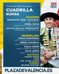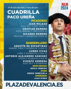Esta tarde concluye la Feria de Julio de Valencia. Se lidian astados de la ganadería de Santiago Domecq para un mano a mano entre Paco Ureña y Román