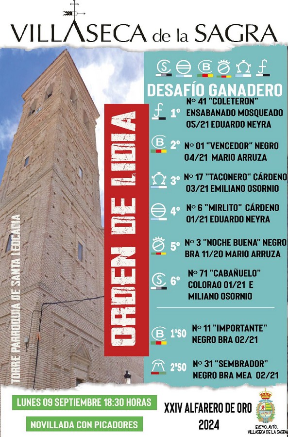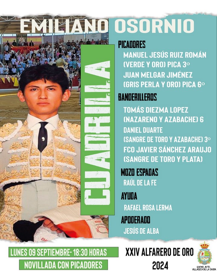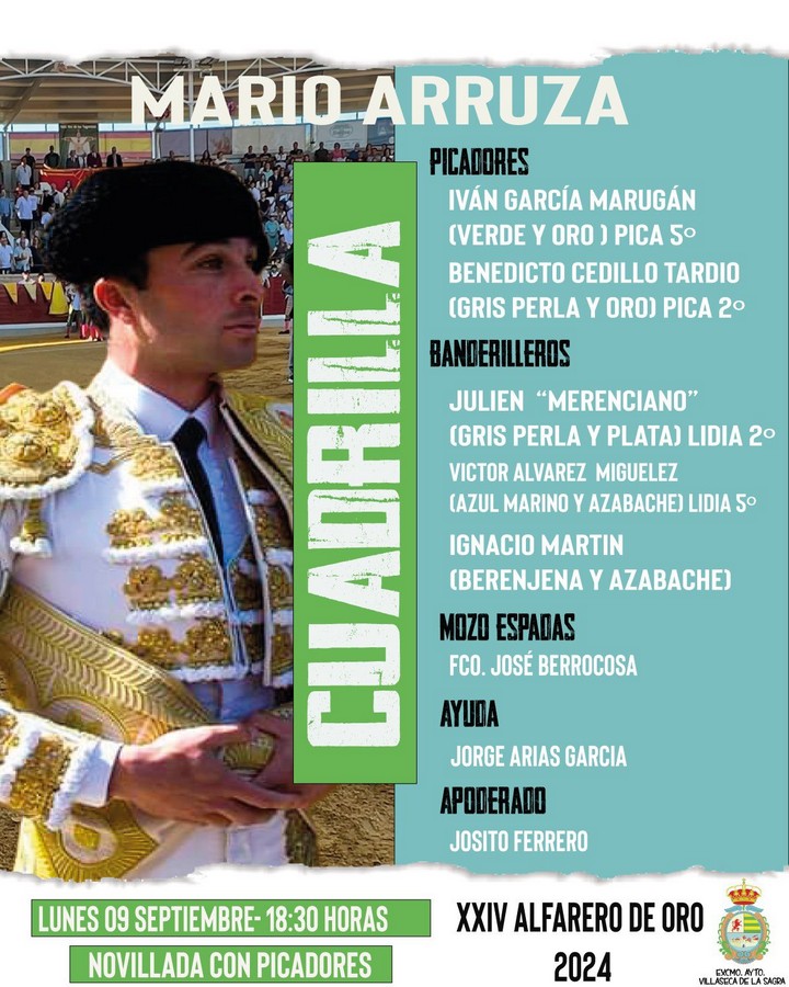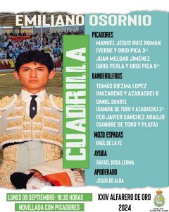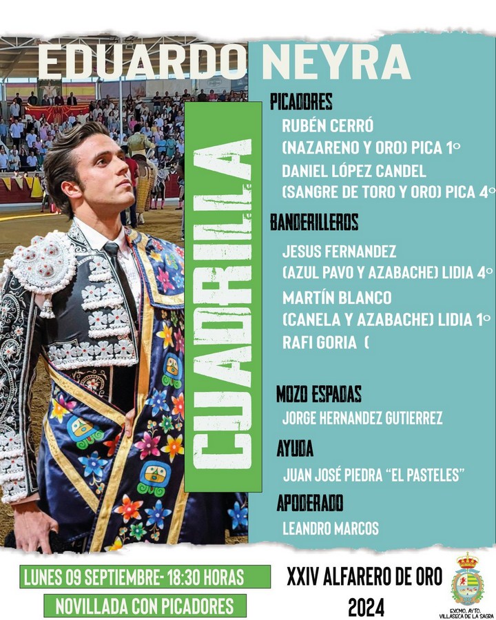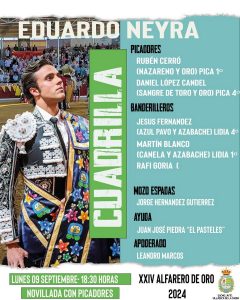 Esta tarde tendrá lugar la quinta novillada del Alfarero de Oro 2024. Saltarán al ruedo astados de Barcial, El Añadío, Partido de Resina, Saltillo, Conde de la Corte y Concha y Sierra para Eduardo Neyra, Mario Arruza y Emiliano Osornio