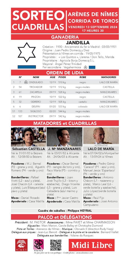Esta tarde comienza la Feria de la Vendimia de Nimes. En este primer festejo tomará la alternativa Lalo de María de manos de Sebastián Castella y en presencia de José María Manzanares frente a toros de Jandilla y Vegahermosa