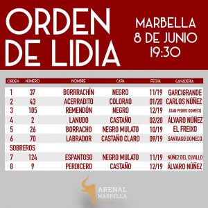 Hoy vuelve a abrir sus puertas la plaza de toros de Marbella. Harán el paseíllo los diestros José María Manzanares, Alejandro Talavante, que sustituye a Morante de la Puebla, y Andrés Roca Rey frente a ejemplares de seis ganaderías distintas