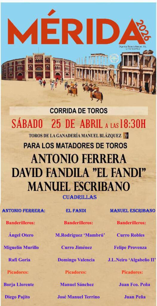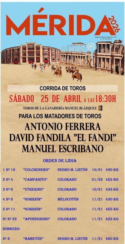 Orden de lidia para la corrida de toros de Mérida
