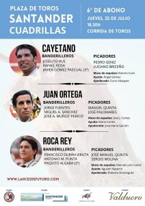 La Feria de Santander, en el Día de Santiago, llega a su cuarta corrida de toros. En ella, se lidiarán cinco toros de Puerto de San Lorenzo y uno de La Ventana del Puerto (6º) para Cayetano, Juan Ortega y Andrés Roca Rey