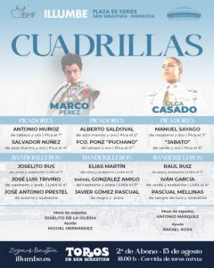 15 Ago ActualidadOrden de lidia para la corrida mixta de San Sebastián Posted on 15/08/202515/08/2025 by Redacción Orden de lidia para la corrida mixta de San Sebastián Se lidian toros de Núñez del Cuvillo y novillos de La Purísima para Marco Pérez y Olga Casado Orden de lidia, cuadrillas y fotos de los animales Orden de lidia para la corrida mixta de San Sebastián Orden de lidia para la corrida mixta de San Sebastián Orden de lidia para la corrida mixta de San Sebastián Orden de lidia para la corrida mixta de San Sebastián BMF Toros Redacción Inauguración de la plaza de toros de Alaejos Lama de Góngora confirmará en Madrid con ‘Gustoso’, de El Torero