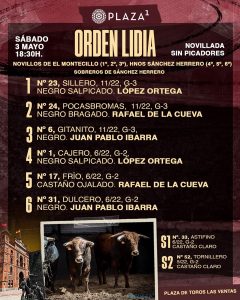03 May ActualidadOrden de lidia para la final del ‘Camino hacia Las Ventas’ Posted on 03/05/202503/05/2025 by Redacción Orden de lidia para la final del ‘Camino hacia Las Ventas’ López Ortega, Rafael de la Cueva y Juan Pablo Ibarra lidiarán reses de El Montecillo y Hnos. Sánchez Herrero Galería de imágenes Orden de lidia para la final del 'Camino hacia Las Ventas' Orden de lidia para la final del 'Camino hacia Las Ventas' Orden de lidia para la final del 'Camino hacia Las Ventas' Orden de lidia para la final del 'Camino hacia Las Ventas' Orden de lidia para la final del 'Camino hacia Las Ventas' Orden de lidia para la final del 'Camino hacia Las Ventas' Plaza 1 Redacción Los ‘Victorinos’ para esta tarde en la Maestranza La Feria de San Pedro Regalado se presenta en Sevilla