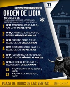 11 Ago ActualidadOrden de lidia para la novillada de hoy en Madrid Posted on 11/08/202411/08/2024 by Redacción Segunda novillada del mes de agosto en Madrid. Se lidian utreros de Paloma Sánchez Rico de Terrones por parte de Rafael Reyes, El Niño de las Monjas y Uceda Vargas Orden de lidia, cuadrillas y fotos de los novillos Orden de lidia para la novillada de hoy en Madrid Orden de lidia para la novillada de hoy en Madrid Orden de lidia para la novillada de hoy en Madrid Orden de lidia para la novillada de hoy en Madrid Orden de lidia para la novillada de hoy en Madrid Orden de lidia para la novillada de hoy en Madrid Orden de lidia para la novillada de hoy en Madrid Orden de lidia para la novillada de hoy en Madrid Vídeo Fotos y Vídeo: Plaza 1 Redacción Los de Samuel Flores y Miranda y Moreno para Huesca Continúa la racha de triunfos de Alfonso Cadaval en ruedos mexicanos