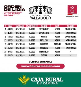 Los ejemplares de Toros de Brazuelas serán lidiados en mano a mano por Daniel Medina y Mario Navas en el primer festejo de la Feria de San Pedro Regalado