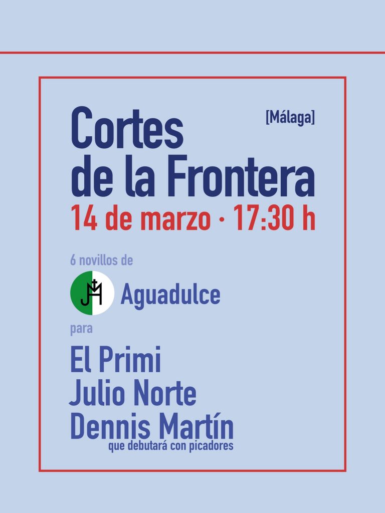 - Sábado 14 de marzo, Cortes de la Frontera: Novillos de Aguadulce para El Primi, Julio Norte y Dennis Martín, que debuta con picadores.