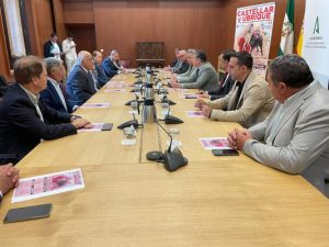 El consejero de la Presidencia, Interior, Diálogo Social y Simplificación Administrativa, Antonio Sanz ha recibido hoy -24 de octubre- en el Palacio de San Telmo, sede de la Presidencia de la Junta de Andalucía, a la Asociación Andaluza de Escuelas Taurinas (A.A.E.T) “Pedro Romero” y a diversas personalidades del mundo taurino, para presentar el cartel del XXV Encuentro Andaluz de Escuelas Taurinas que se celebrará el próximo mes de octubre en las localidades de Castellar (Jaén) y Ubrique (Cádiz).