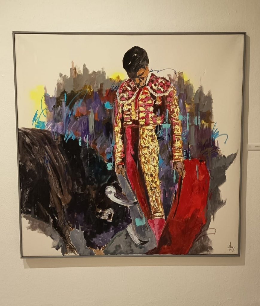 Destaca por su fuerza en el colorido donde el autor busca el movimiento. Entusiasmado tras una visita a la ganadería de Cuadri, “Alex el Pintor”, como se le conoce, toreó muchas tardes como novillero, y conociendo desde dentro el sentimiento del oficio, ha encontrado en su trazo la realización del que lleva el arte en las venas.
