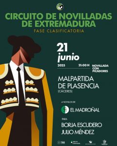 Malpartida de Plasencia (21/06): 4 novillos de El Madroñal para Borja Escudero y Julio Méndez.