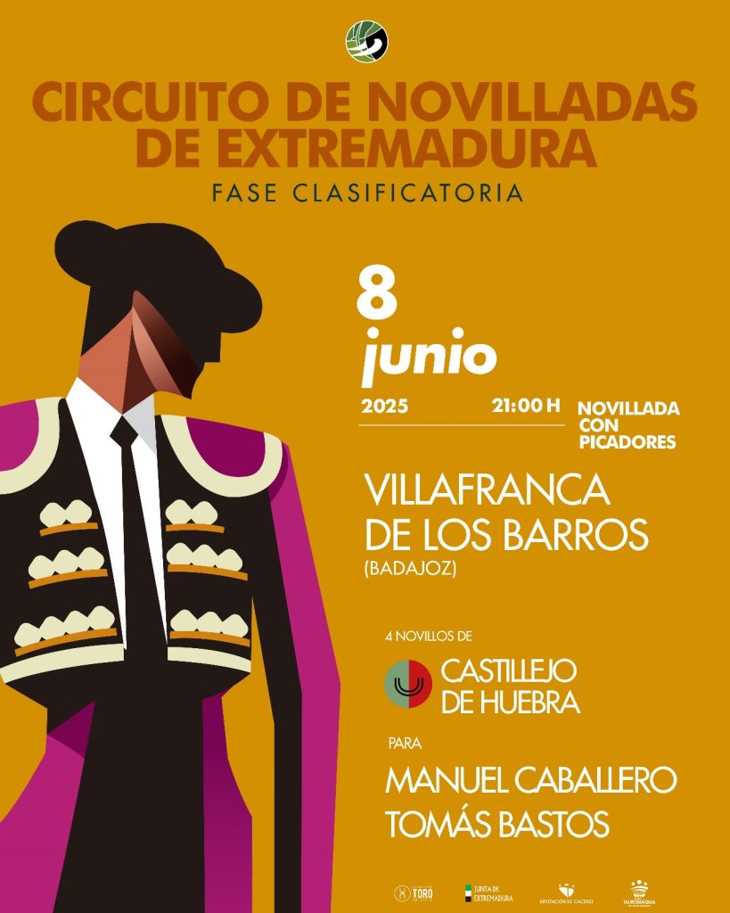 Villafranca de los Barros (8/06): 4 novillos de Castillejo de Huebra para Manuel Caballero y Tomás Bastos.