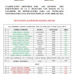 Para el sexto puesto al existir un empate entre David Fernández Galindo, E. T. Málaga; e Ignacio Sabater Parejo, E.T. Camas; ambos con 4,44 puntos, se realiza un sorteo siendo el alumno elegido: David Fernández Galindo, E. T. Málaga.
