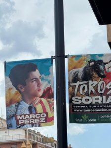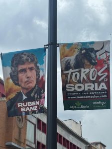 Pero si algo destaca sobremanera es la espectacular lona instalada en una de las torres de la plaza de toros de Soria. En ella, aparece una imagen de Morante de la Puebla, con su nombre seguido del lema “El torero más grande de la historia vuelve a Soria”.