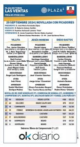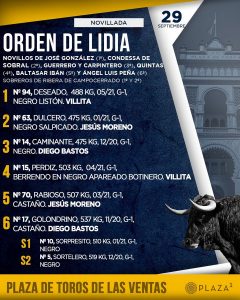 Ejemplares de seis ganaderías diferentes pisarán esta tarde el ruedo venteño en la primera novillada del ciclo otoñal en la que se anuncian Villita, Jesús Moreno y Diego Bastos