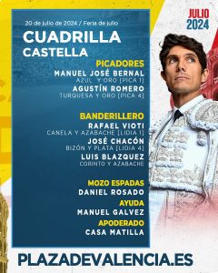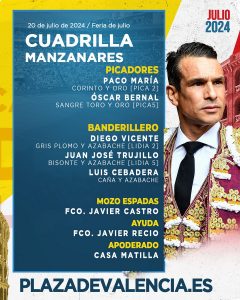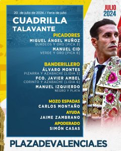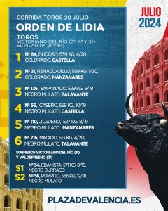 20 Jul ActualidadSorteados los de El Pilar y Victoriano del Río para esta tarde en Valencia Posted on 20/07/202420/07/2024 by Redacción Tercer festejo de la Feria de Julio de Valencia, segunda corrida de toros, en la que saltarán al ruedo astados de El Pilar y Victoriano del Río para Sebastián Castella, José María Manzanares y Alejandro Talavante Orden de lidia y cuadrillas Sorteados los de El Pilar y Victoriano del Río para esta tarde en Valencia Sorteados los de El Pilar y Victoriano del Río para esta tarde en Valencia Sorteados los de El Pilar y Victoriano del Río para esta tarde en Valencia Sorteados los de El Pilar y Victoriano del Río para esta tarde en Valencia Redacción Morante de la Puebla reaparecerá en Santander el 23 de julio Los novillos de Casasola para el arranque de Santander