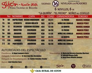 16 Ago ActualidadSorteados los novillos para esta tarde en Gijón Posted on 16/08/202416/08/2024 by Redacción Segunda de la Feria de Begoña de Gijón en la que saltarán al ruedo utreros de El Freixo, Núñez del Cuvillo y La Quinta para un mano a mano entre Manuel Román y Marco Pérez Orden de lidia y cuadrillas Sorteados los novillos para esta tarde en Gijón Sorteados los novillos para esta tarde en Gijón Imágenes: Circuitos Taurinos Redacción Julio Norte, triunfador en Dax Fernando Tendero e Israel Aparicio abren la puerta grande en el inicio de Ciudad Real