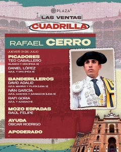 Los ejemplares de la vacada salmantina serán lidiados a partir de las 21:00 horas por Rubén Pinar, Rafael Cerro y Raúl Rivera, que confirma alternativa