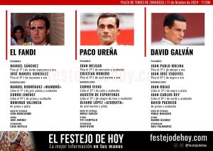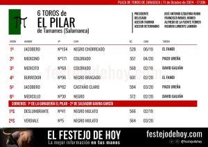 Sorteados y enchiquerados los animales de El Pilar que protagonizarán la quinta corrida de toros de la Feria del Pilar, en la que actuarán El Fandi, que sustituye a Borja Jiménez, Paco Ureña y David Galván