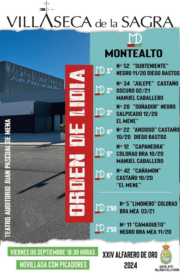 Ya aguardan en los corrales del Coso de «La Sagra» los utreros de la ganadería de Montealto que esta tarde pisarán el ruedo en la tercera de las citas del Alfarero de Oro. En el cartel figuran los novilleros Diego Bastos, Manuel Caballero y El Mene, que sustituye a Samuel Navalón