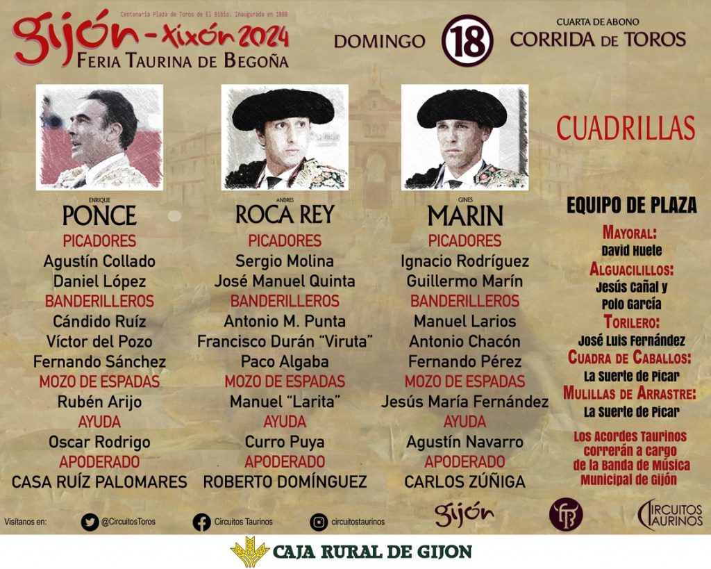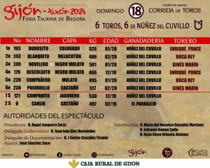 Ya han sido sorteados y enchiquerados los ejemplares de Núñez del Cuvillo que protagonizarán el cierre de la Feria de Begoña de Gijón. Los encargados de lidiarlos serán Enrique Ponce, Andrés Roca Rey y Ginés Marín