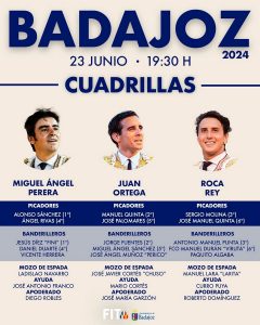 Badajoz celebra esta tarde la segunda corrida de toros de la Feria de San Juan. Se lidian animales de Núñez del Cuvillo para Miguel Ángel Perera, que cumple hoy 20 años de alternativa, Juan Ortega y Andrés Roca Rey