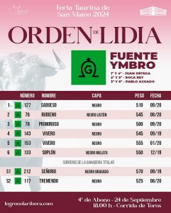 Sorteo de los toros de Fuente Ymbro para hoy en Logroño