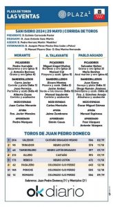 Seis toros de la ganadería de Juan Pedro Domecq protagonizarán el 17º festejo de la Feria de San Isidro, en el que están anunciados Morante de la Puebla, Alejandro Talavante y Pablo Aguado
