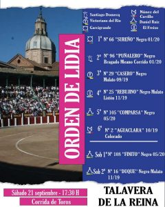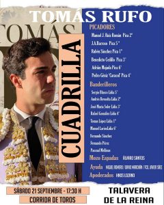 Ya han sido enchiquerados los astados que pisarán esta tarde el Coso de «La Caprichosa» de Talavera de la Reina en la cita en solitario de Tomás Rufo. Los animales pertenecen a las ganaderías de Domingo Hernández, Santiago Domecq, Victoriano del Río, El Freixo, Daniel Ruiz y Núñez del Cuvillo