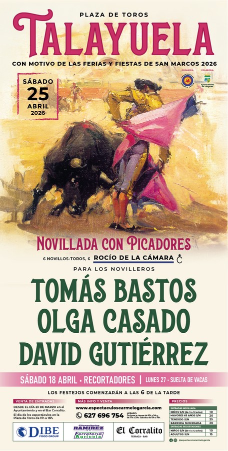 Talayuela volverá a vestirse de gala para acoger uno de los eventos más esperados de su calendario festivo. Con motivo de las ferias y fiestas de San Marcos 2026, la localidad cacereña será escenario, el próximo sábado 25 de abril, de una novillada con picadores.