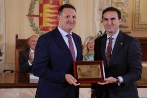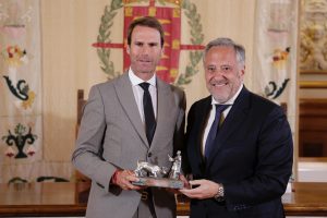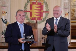 Alberto García, CEO de Tauroemoción, ha recogido el galardón de manos del alcalde Valladolid, Jesús Julio Carnero, y la concejal de Educación y Cultural, Irene Carvajal.