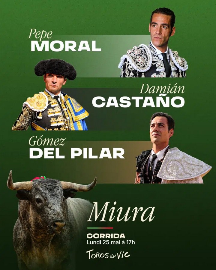 18:00 horas. Toros de Miura para Pepe Moral, Damián Castaño y Gómez del Pilar.