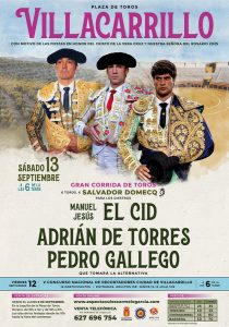 El cartel de la corrida del próximo sábado 13 de septiembre está encabezado por el maestro sevillano Manuel Jesús ‘El Cid’ y los jienenses Adrián de Torres y Pedro Gallego, que tomará la alternativa. La terna lidiará un encierro gaditano de máximo prestigio, compuesto por toros de la divisa de Salvador Domecq.