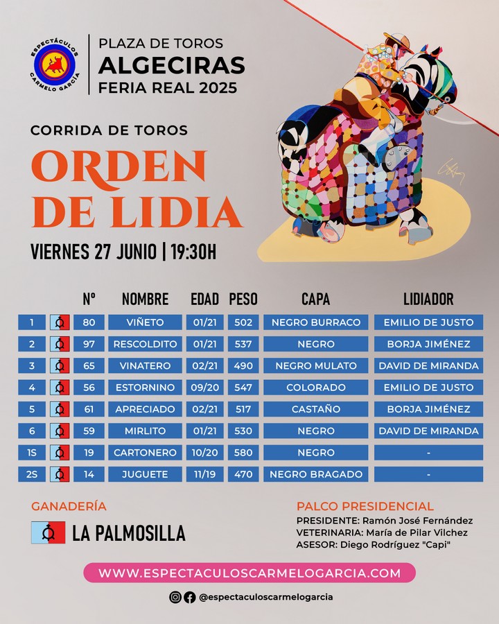 Los toros de la ganadería de La Palmosilla ya han sido enlotados, sorteados y enchiquerados a expensas de ser lidiados esta tarde en el tercer festejo de la Feria Real de Algeciras 2025.