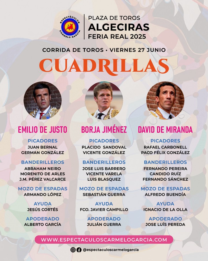 El cartel está compuesto por Emilio de Justo, Borja Jiménez y David de Miranda