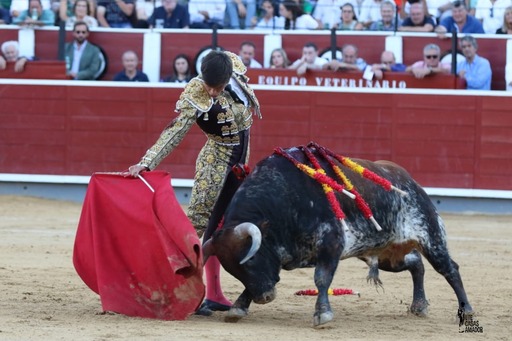 Samuel Navalón volvió hoy a torear ante el público tras la cornada sufrida la pasada semana en El Casar. En ningún momento se le notó al novillero valenciano dicha circunstancia, antes al contrario. Con una larga cambiada saludó al segundo de la tarde, siguiendo después con templadas verónicas, ya en pie. Se luce nuevamente con el percal en un quite por chicuelinas, en el que se pasó al de Montealto muy cerca. Dos grandes pares de banderillas colocó Andrés Revuelta. Por estatuarios comenzó su faena Samuel Navalón, quedándose siempre en el sitio para ligar los muletazo. El novillo repitió tras el trapo rojo que le presentaba Navalón con nobleza, movilidad y transmisión, resultando mejores las series instrumentadas con la mano derecha, ya que por el pitón izquierdo salía más desentendido. El trasteo, de una enorme intensidad, mantuvo el tono alto en todo momento. Al final, se metió el de Ayora en terrenos de cercanías. El cornúpeta de Montealto terminó rajado. Estocada corta algo tendida. Dos orejas.