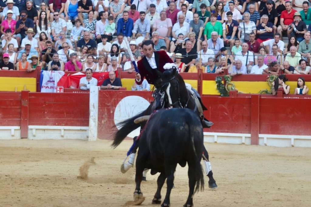 Diego Ventura estuvo impecable toda la tarde, salvo con los aceros. Presentó en Alicante a un nuevo «Manzanares», del hierro de Manuel, con el que puso banderillas al quiebro muy de verdad. En el quinto, Oro Negro y Quitasueños, demostraron ser dos caballos valientes ante el peor toro de la función.