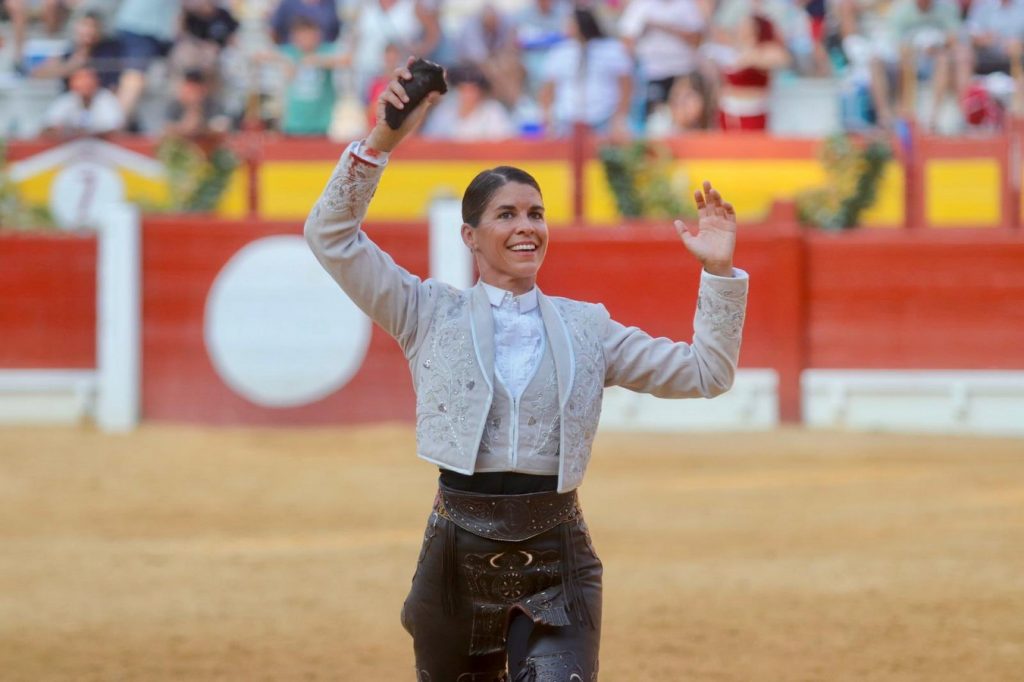 Cerraba el cartel Lea Vicens. La rejoneadora francesa se entregó el los dos turnos. Paseó un trofeo del primero y, cuando tenía el triunfo ganado en el cierraplaza, el rejón de muerte lo dejó todo en palmas de despedida.