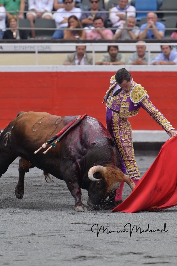 Plaza de toros de Vista Alegre de Bilbao. Segundo festejo de la Aste Nagusia. Primera corrida de toros. Un tercio de entrada. Ejemplares de la ganadería de Fuente Ymbro, muy bien presentados, de juego interesante y serio comportamiento. Segundo, cuarto y sexto, los mejores.