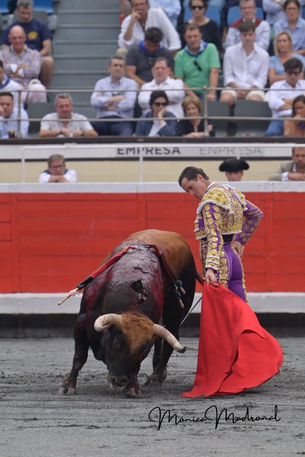 A porta gayola se marchó Borja Jiménez para recibir al segundo, viviéndose un momento de peligro, por fortuna saldado con bien. No se empleó el de Fuente Ymbro en el peto. En el tercio final, el toro fue bravo, encastado, repetidor, exigente, al que respondió Borja Jiménez con series de muletazos por ambos lados extensas, de gran profundidad y mucha pureza, quedándose siempre colocado con la franela por delante para lograr la ligazón. Inmenso el torero de Espartinas, asentado en los riñones, encajado, haciendo las cosas con pureza y mucho compromiso, pasándose al de Fuente Ymbro por los muslos una y otra vez. Torería en los ayudados finales. Estocada en lo alto. Oreja.