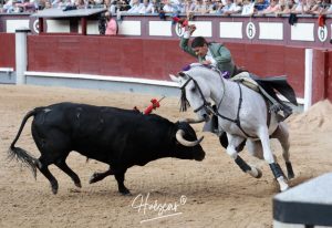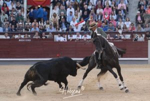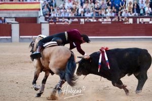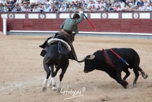 1º ‘Esmeraldo’, Nº 12. Toro con calidad, con clase, con ritmo en la embestida. Con ‘H- Quiebro’, Rui Fernnades colocó dos banderillas, toreando de costado, templando a la perfección al astado de San Pelayo. El tercero de los palitroques lo hizo saliendo hacia los medios, de poder a poder, en rectitud. La última banderilla, la cuarta, que prendió con ‘Dorado’, lo fue aprovechando la querencia a los adentros del burel de San Pelayo. Con ‘Pimienta’ dejó varias banderillas cortas, antes de coger el rejón de muerte. Toro con movilidad, con transmisión y son de la vacada salmantina. Rejonazo caído. Ovación.