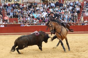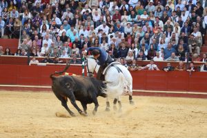 Tres orejas conquistó el alicantino y tres y un rabo el jinete afincado en La Puebla del Río
