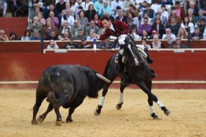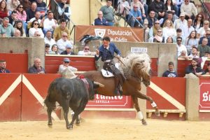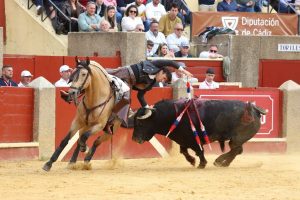 En el tercio de banderillas, destacó la actuación con “Quirico”, que desplegó elegancia y valor frente a un astado con gran ritmo y transmisión, firmando un pasaje que encendió los tendidos. A continuación, montando a “Oronegro”, Ventura ejecutó una brillante labor al galopar de costado, batir al pitón contrario y clavar con precisión y torería, en una demostración de gran pureza. Todo ello ante un toro de calidad, al que supo imponerse con firmeza y autenticidad. Cerró su actuación con ‘Brillante’ protagonizando un vistoso carrusel de banderillas cortas al violín que puso el broche a una faena de alto nivel.