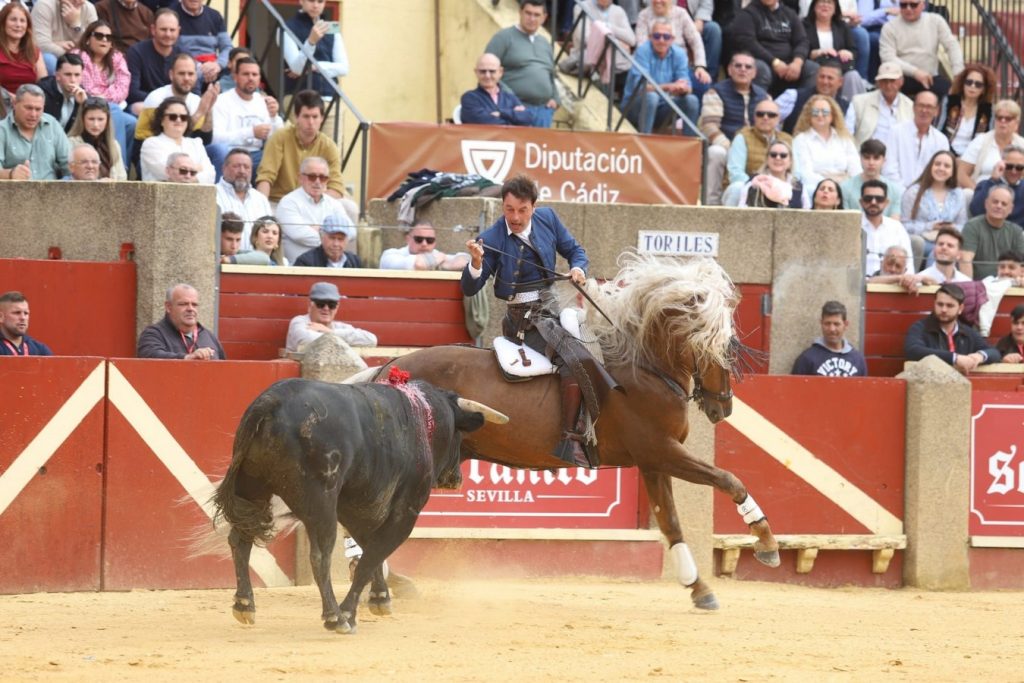 En esta fase, destacó la labor con “Cartago”, que se mostró enfrontilado y recto, llegando con los pechos y atacando con pureza. Ejecutó dos banderillas a una mano de notable precisión y belleza. A continuación, con “Baena”, citó al toro mediante la suerte del zigzag, aportando mayor lucimiento al tercio. Posteriormente, “Pintas” tomó protagonismo en las banderillas cortas, mostrando una personalidad singular que cautivó al público en un carrusel de ejecuciones impecables. El rejoneador adornó su actuación con el recurso del teléfono, logrando una conexión plena con los tendidos. Remató la faena con un par a dos manos, recibiendo al toro en corto y dejándolo muy reunido, todo ello ante un ejemplar con fondo que colaboró hasta el final.