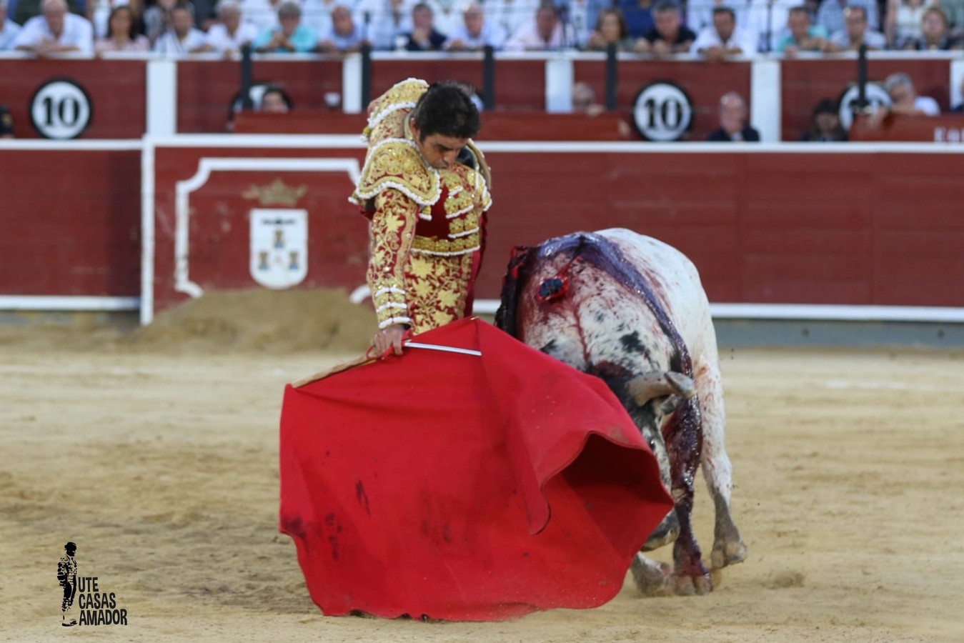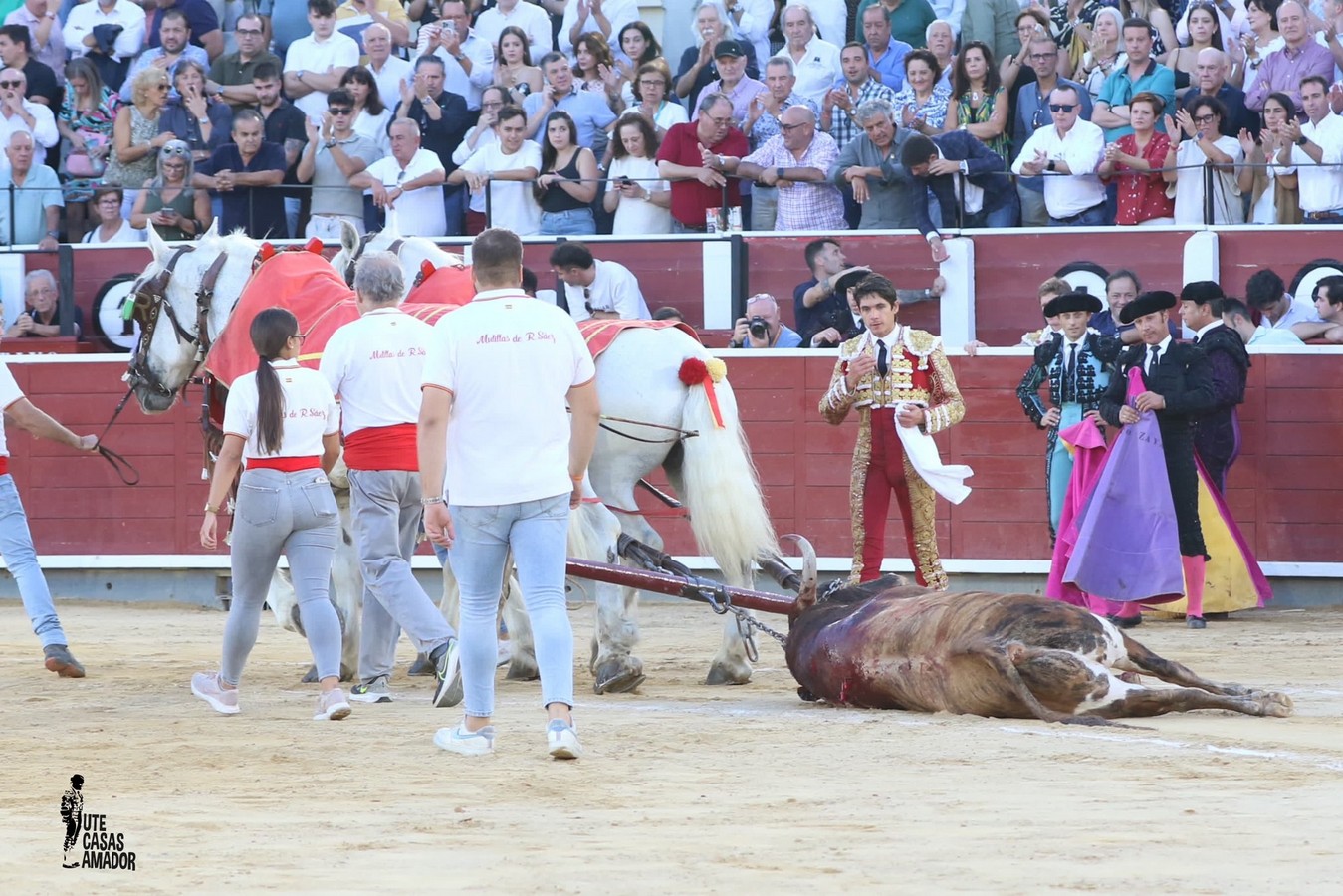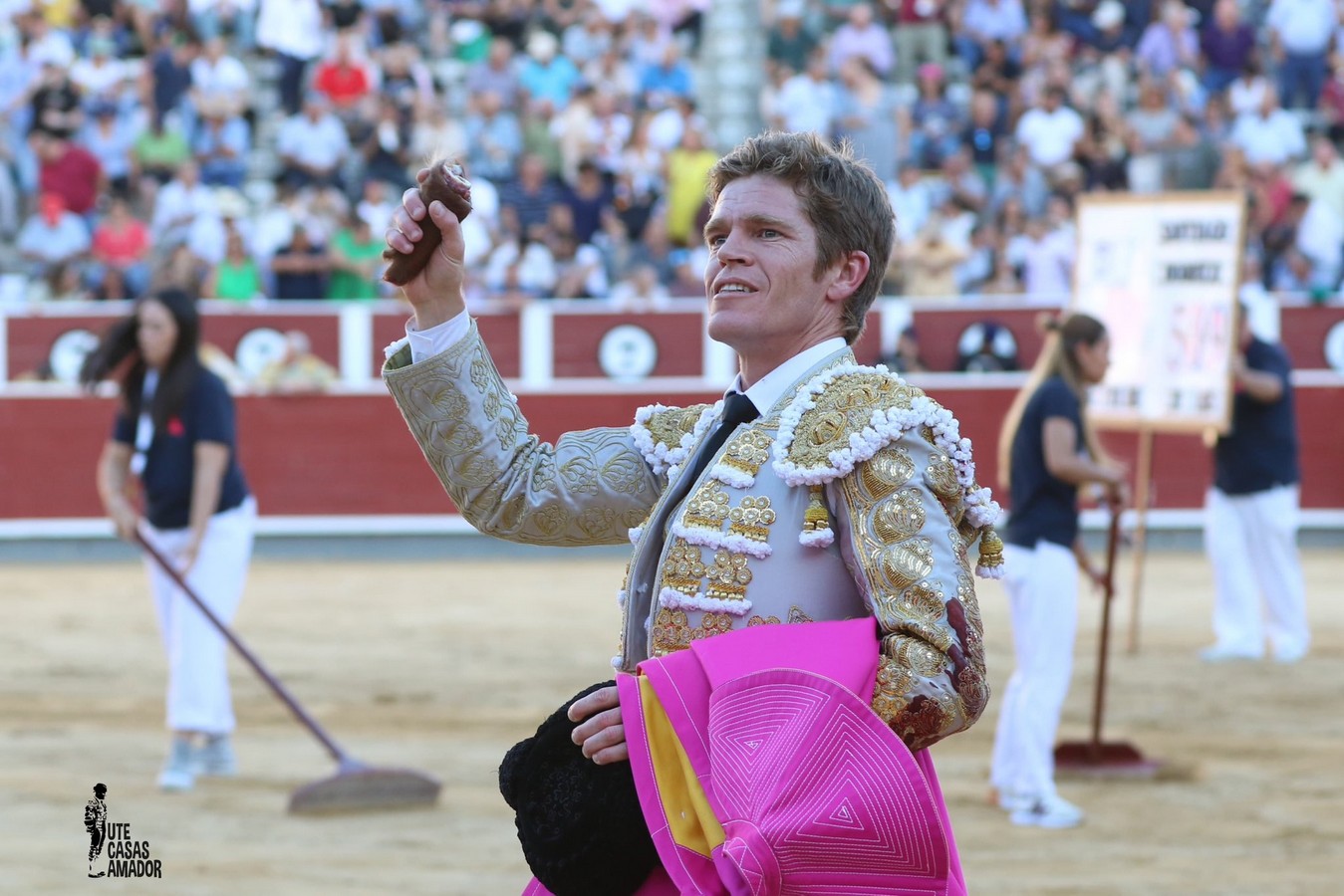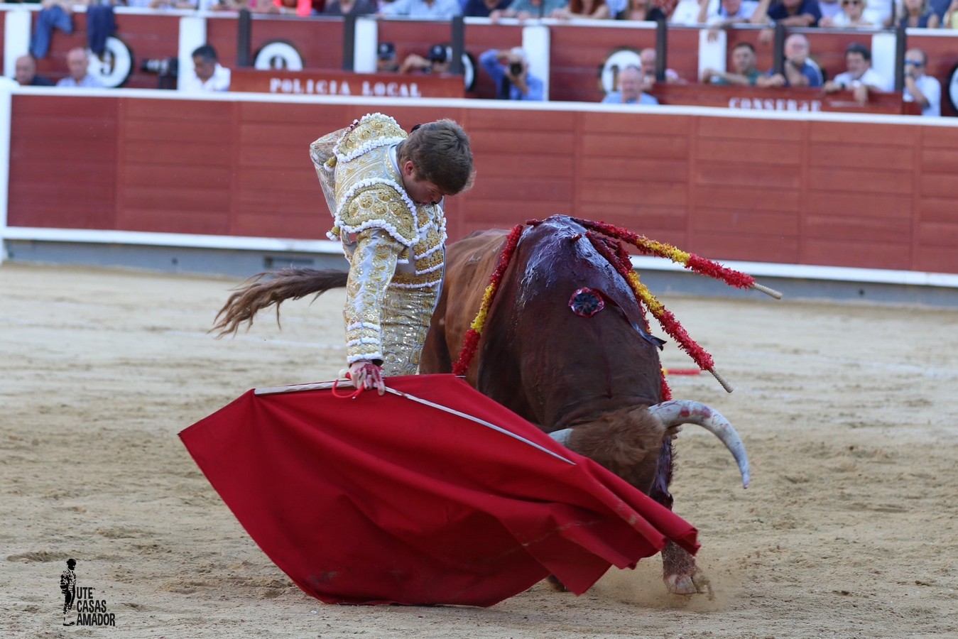 Con un manojo de buenas verónicas saludó Borja Jiménez al tercero de la corrida, un toro con casta y transmisión pero con limitada clase y entrega. También empezó faena el matador sevillano con pases cambiados por la espalda, consiguiendo los momentos álgidos del trasteo con la mano derecha. Asentado, encajado el de Espartinas, que cuajó series de gran profundidad y pureza. La verdad y la disposición total de Borja Jiménez fueron recompensadas con un apéndice después de dejarlo para las mulillas de una estocada entera.