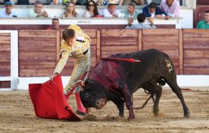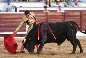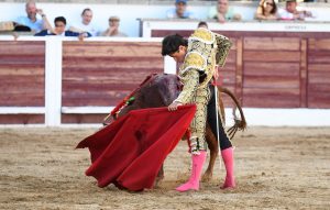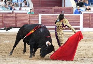 Plaza de toros de San Martín de Valdeiglesias (Madrid). Última semifinal del Circuito de Novilladas de Madrid. Utreros de Baltasar Ibán, el 2º, «Espantavivos», premiado con la vuelta al ruedo.