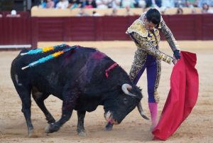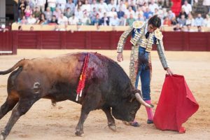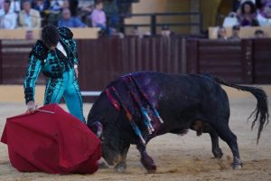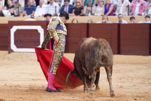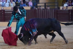 2º “Alumbrador”, Nº 26. El segundo un colorado chorreado algo más despegado del suelo que su hermano el primero. Talavante lo recibió con buen manejo de capote en varias verónicas con enjundia. Una vara bien dosificada y cambio de tercio. El segundo acometió a la muleta con buen inicio pero le faltaron finales y un punto de transmisión, con lo que Alejandro puso mucho para llegar arriba. Pulseó con juicio por ambos pitones componiendo un toreo fundamental ligado y un puñado de naturales limpios. Abrochó con muletazos citando de frente y cadera atrás por el pitón izquierdo, dando profundidad al muñecazo izquierdo. Estocada y oreja.