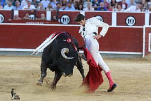 En séptimo lugar llegó la faena más rotunda y redonda de la tarde, gracias a la unión entre Daniel Luque y un buen toro de Domingo Hernández, con clase y calidad. Desde el capote, ya se lució el diestro sevillano, meciéndolo con ritmo en un gran quite por chicuelinas. Lección magistral de Luque, por colocación, técnica, alturas y distancias, sacando todo lo que tenía el astado de la vacada salmantina. Las luquesinas calaron con fuerza en el tendido. Estocada trasera. Dos orejas.