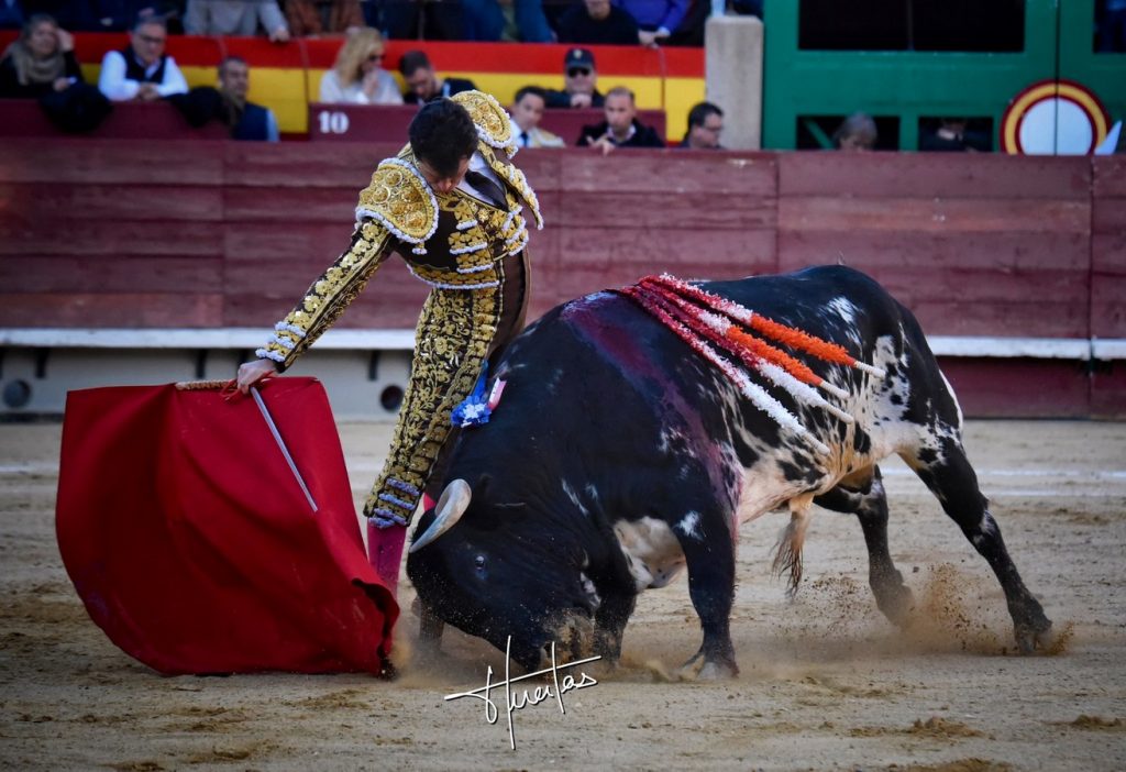 Tomás Rufo cortó una oreja al primero de su lote, en una faena donde puso a la gente muy caliente con el capote tanto con las largas de rodillas como con los ajustados y templados delantales. Faena de entrega con un toro a menos en una tarde condicionada por el viento, que de momento imposibilita coger la mano izquierda con mínimas garantías.